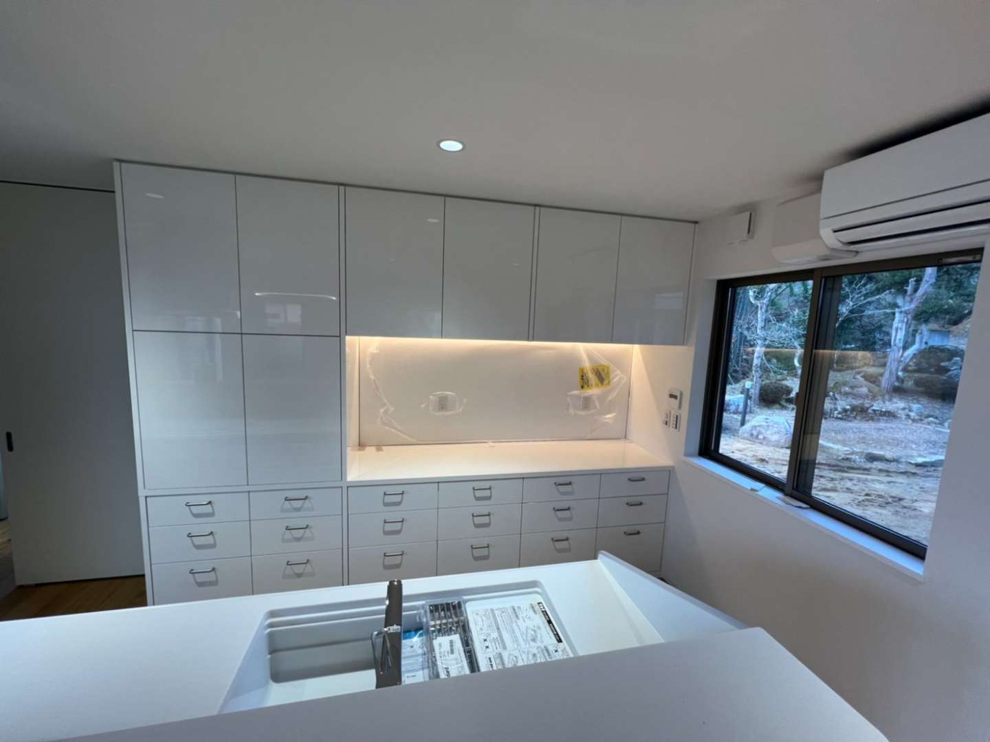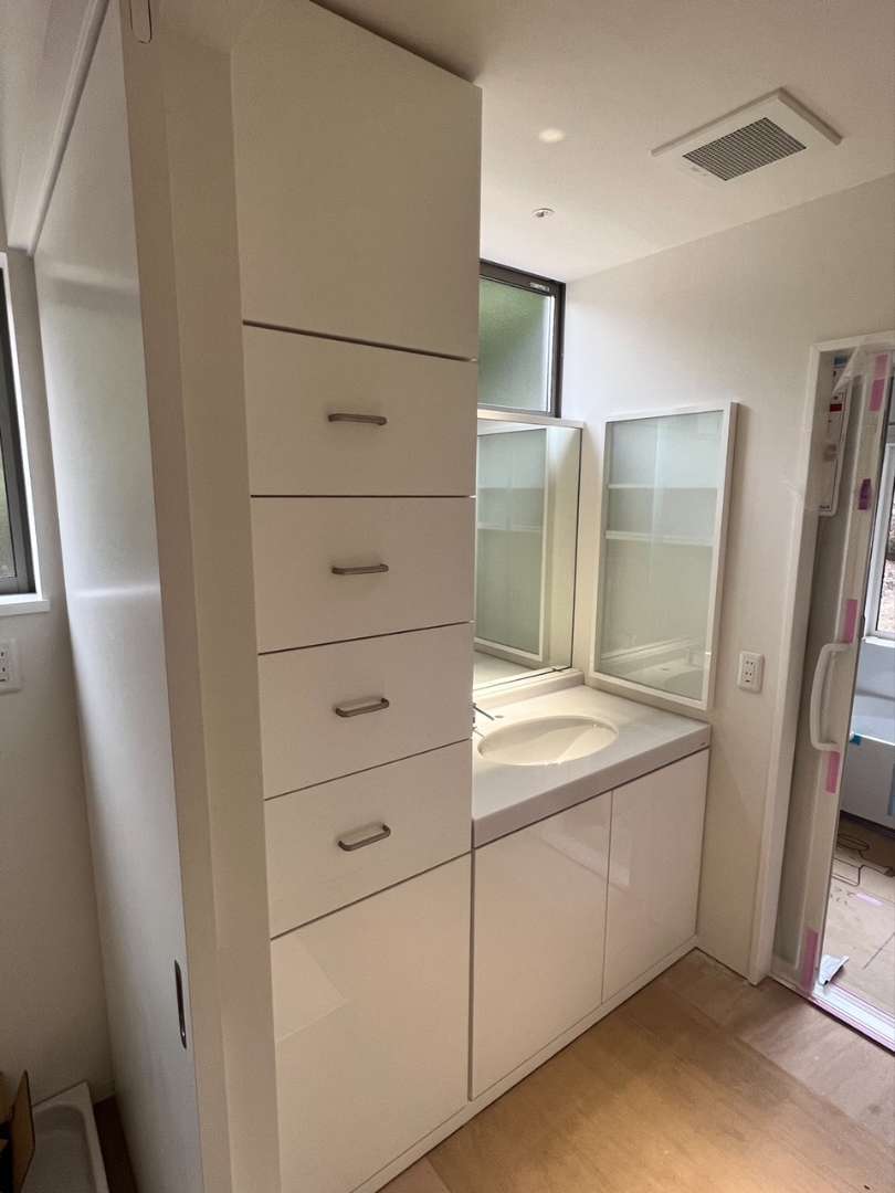 今回は住宅のキッチン壁面収納・洗面家具を製作させていただきました。