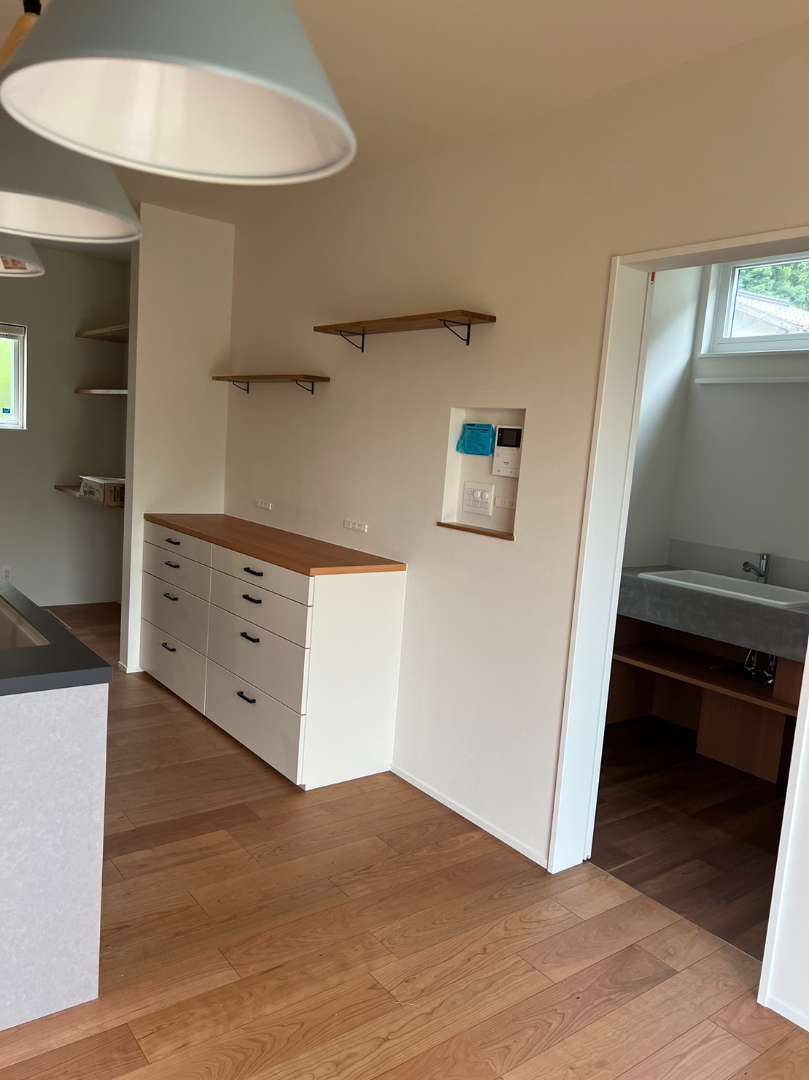 今回は洗面廻りとキッチン収納家具を製作させていただきました。