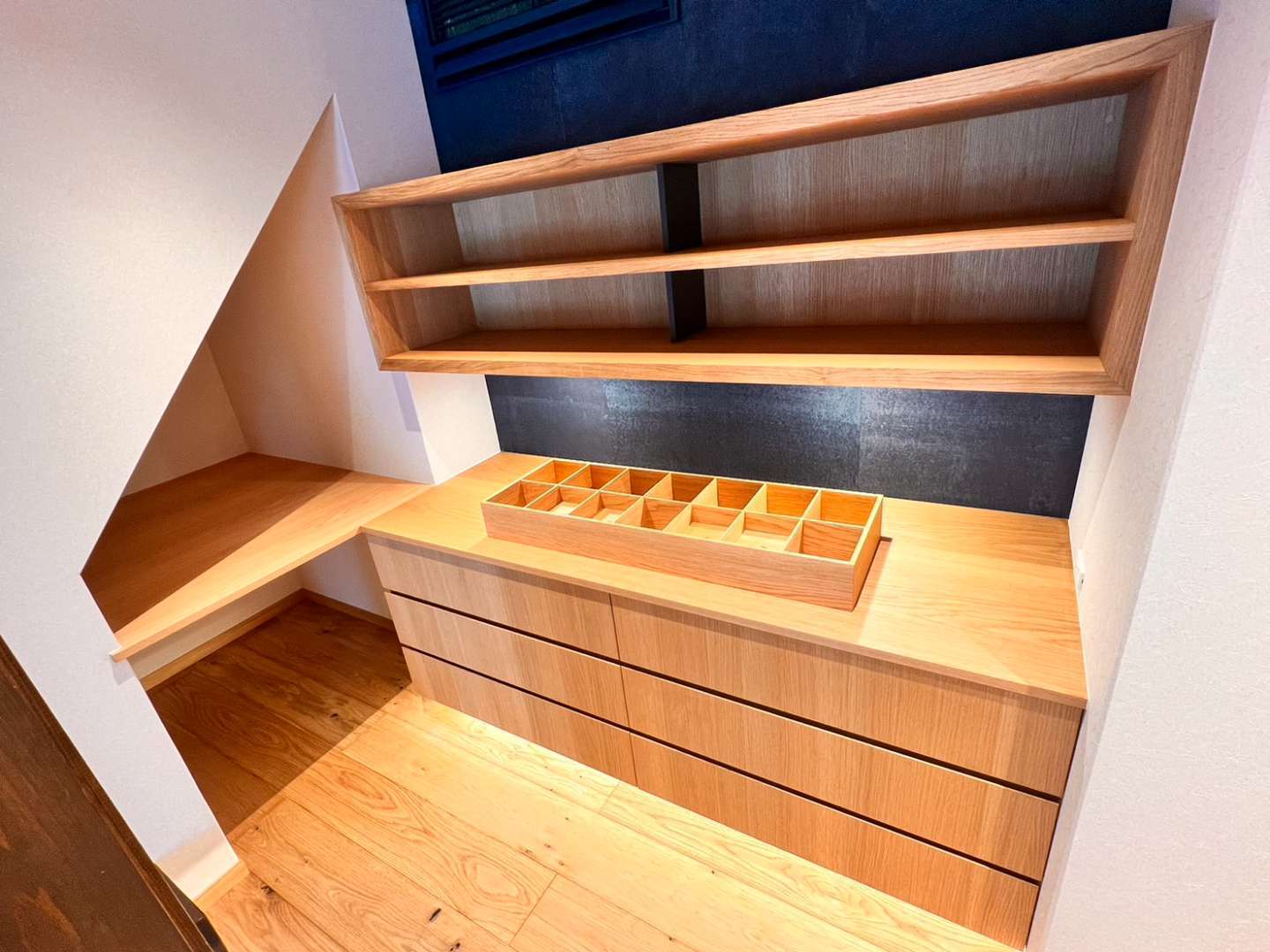 もひとつ②~ホールに引出式浴衣収納(木目が縦に通ってグー)