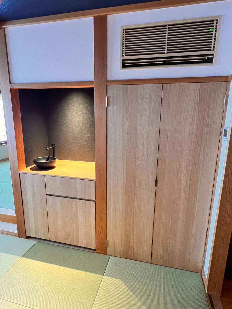 温泉お宿I旅館様の家具と収納扉を製作させて頂きました。