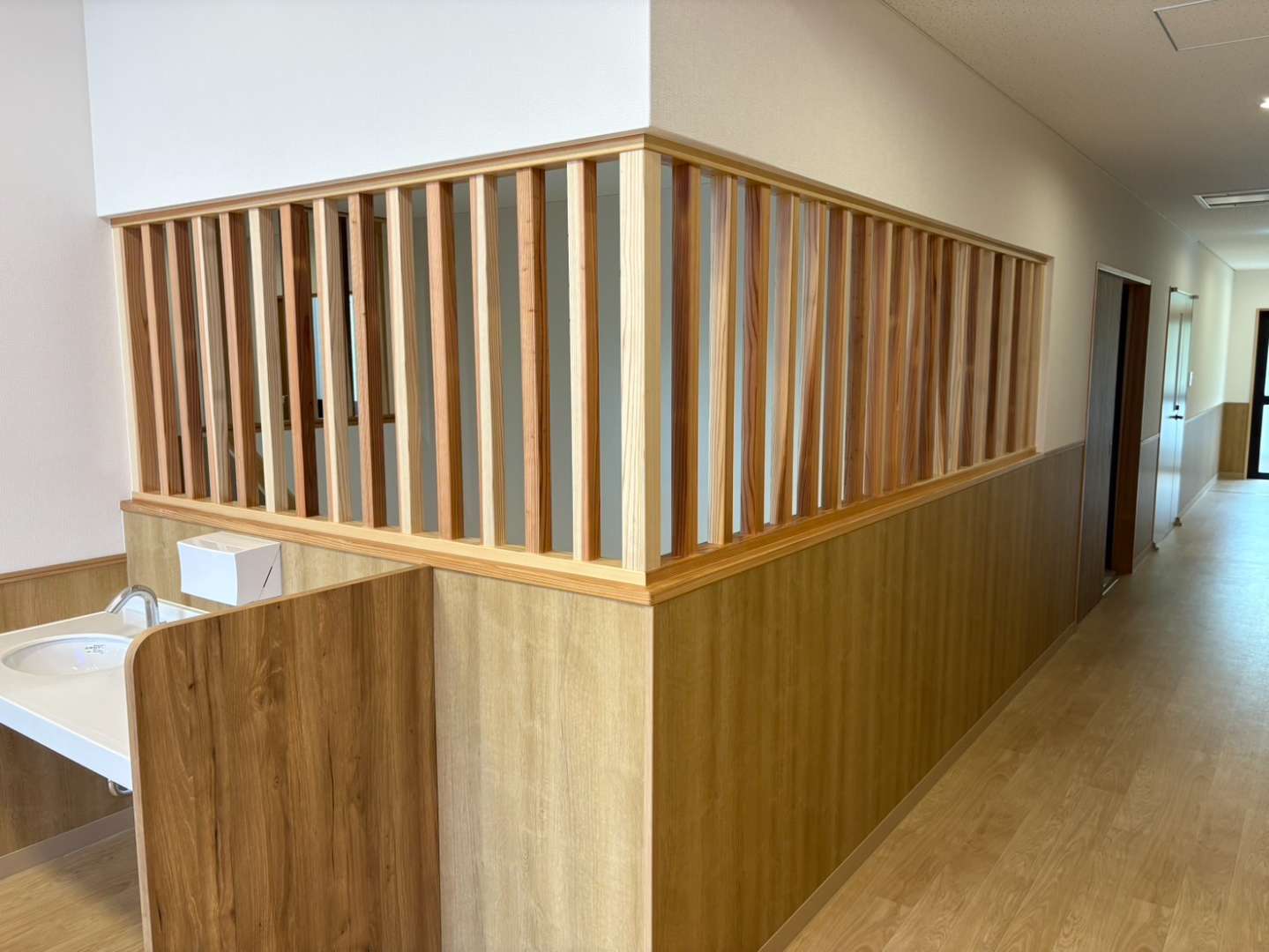 福祉施設・・・収納棚、カウンター、下足箱、格子、手摺
