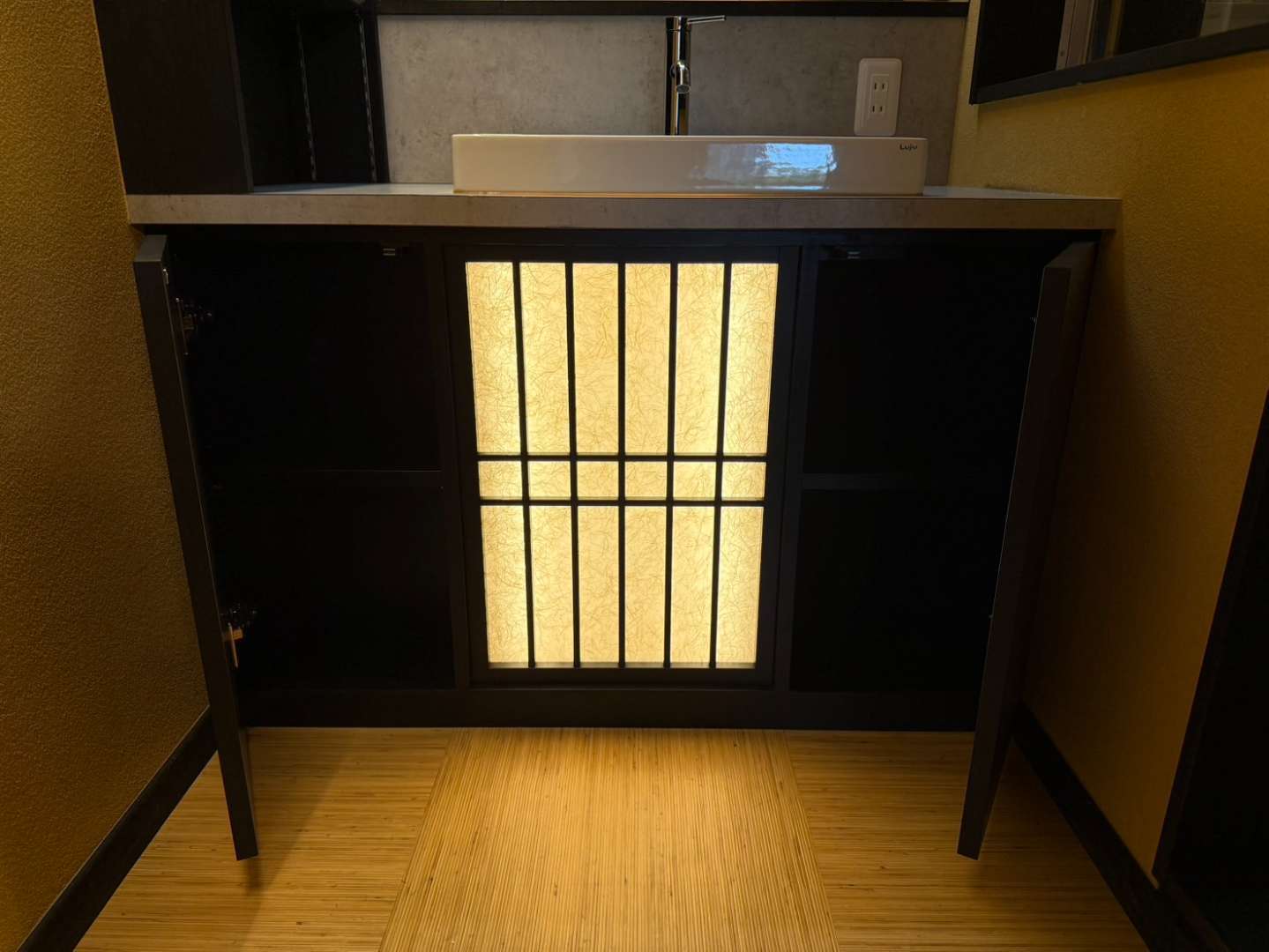 その他 収納家具 【兵庫県豊岡市】城崎温泉T旅館様 収納家具 洗面台の下に電気工事を行い、照明の美しい収納家具が出来上がりました。兵庫県豊岡市の工房とよおかは、世界に1つだけのオーダー家具・建具製作を承っております。自社工場による施工で細かなご要望にも柔軟に対応、デザイン・設計・製造・施工・メンテナンスまで、一括してお請けできるのが強みです。空間をより豪華に彩る、最高品質の木製家具・木製建具をお求めの際は、ぜひわたしたちにご相談ください。#木製建具 #木製家具 #オーダーメイド #収納棚 #兵庫県豊岡市 #城崎温泉 #旅館 navigate_next 竣工日 2025年10月 場所 兵庫県豊岡市 施工内容 家具工事 前の施工事例 その他 【兵庫県豊岡市】城崎温泉T旅館様 収納扉 次の施工事例 その他 【兵庫県豊岡市】城崎温泉T旅館様 下足箱 1 / 1